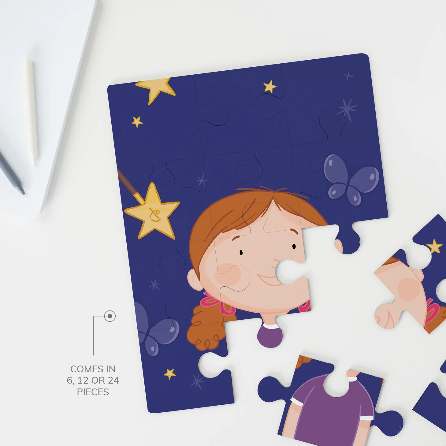 Personalised with your child's name, our Jigsaw puzzle is a fun and stimulating way to encourage education through play. Designed with durability in mind and with a premium wooden finish, solving the puzzle will promote fine motor skills and help your child learn their name, ABCs or 123s. Beautiful to look at, our wooden puzzles are the perfect gift and keepsake.